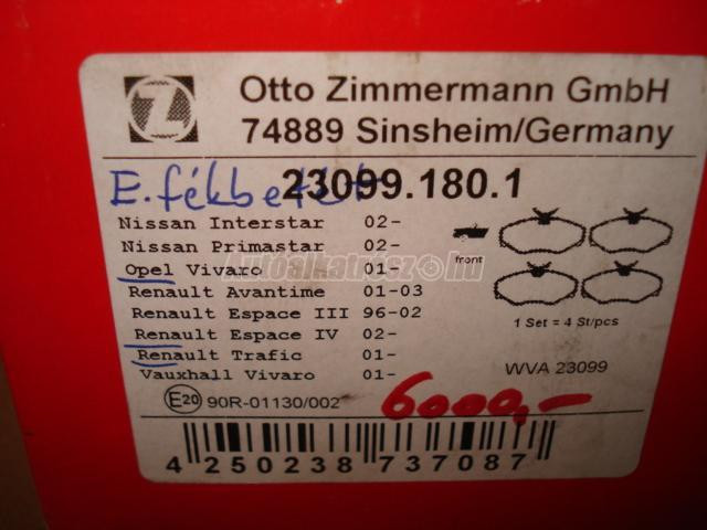 NISSAN PRIMASTAR | RENAULT TRAFIC, ESPACE | OPEL VIVARO | VAUXHALL VIVA - 2005 - 23099.180.1 - fékbetét készlet, tárcsafék
